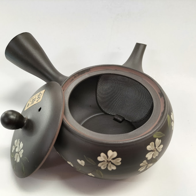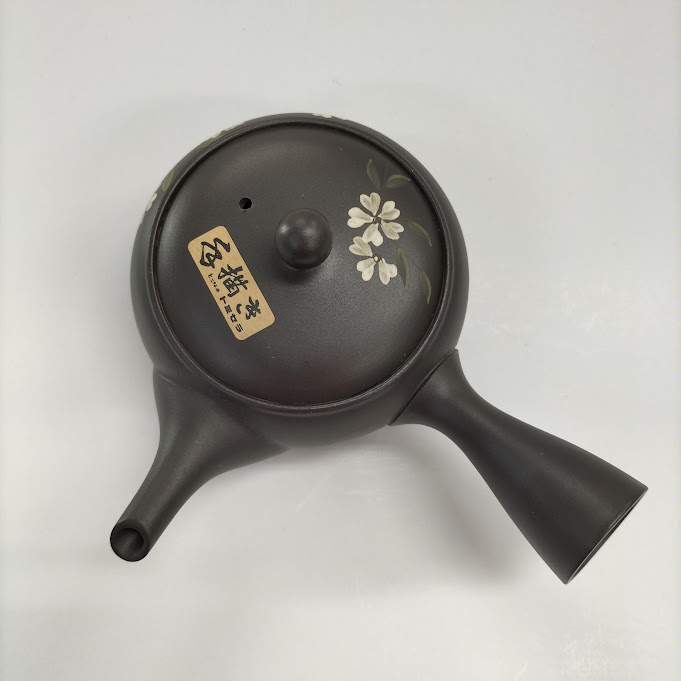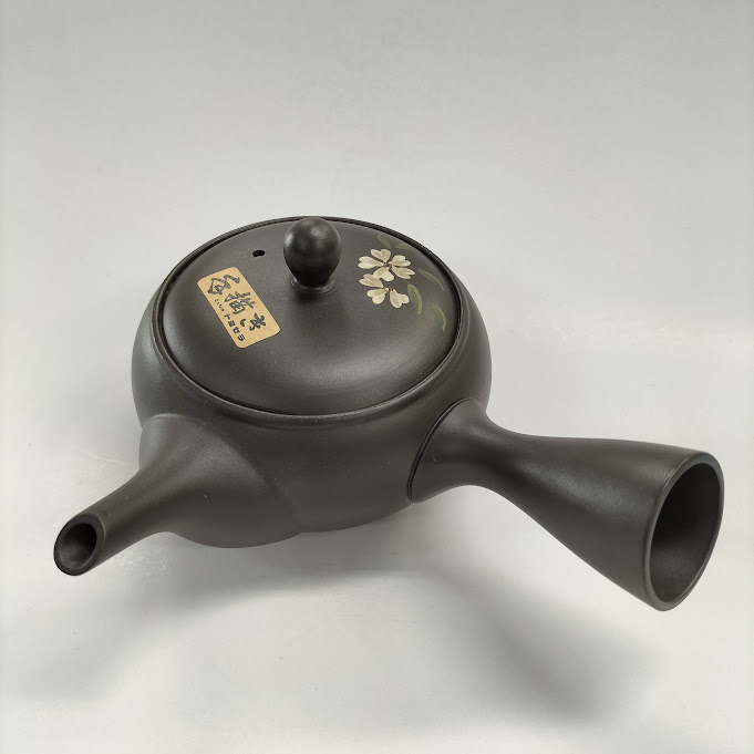 【常滑焼】 黒化粧平丸枝垂れ桜急須 412